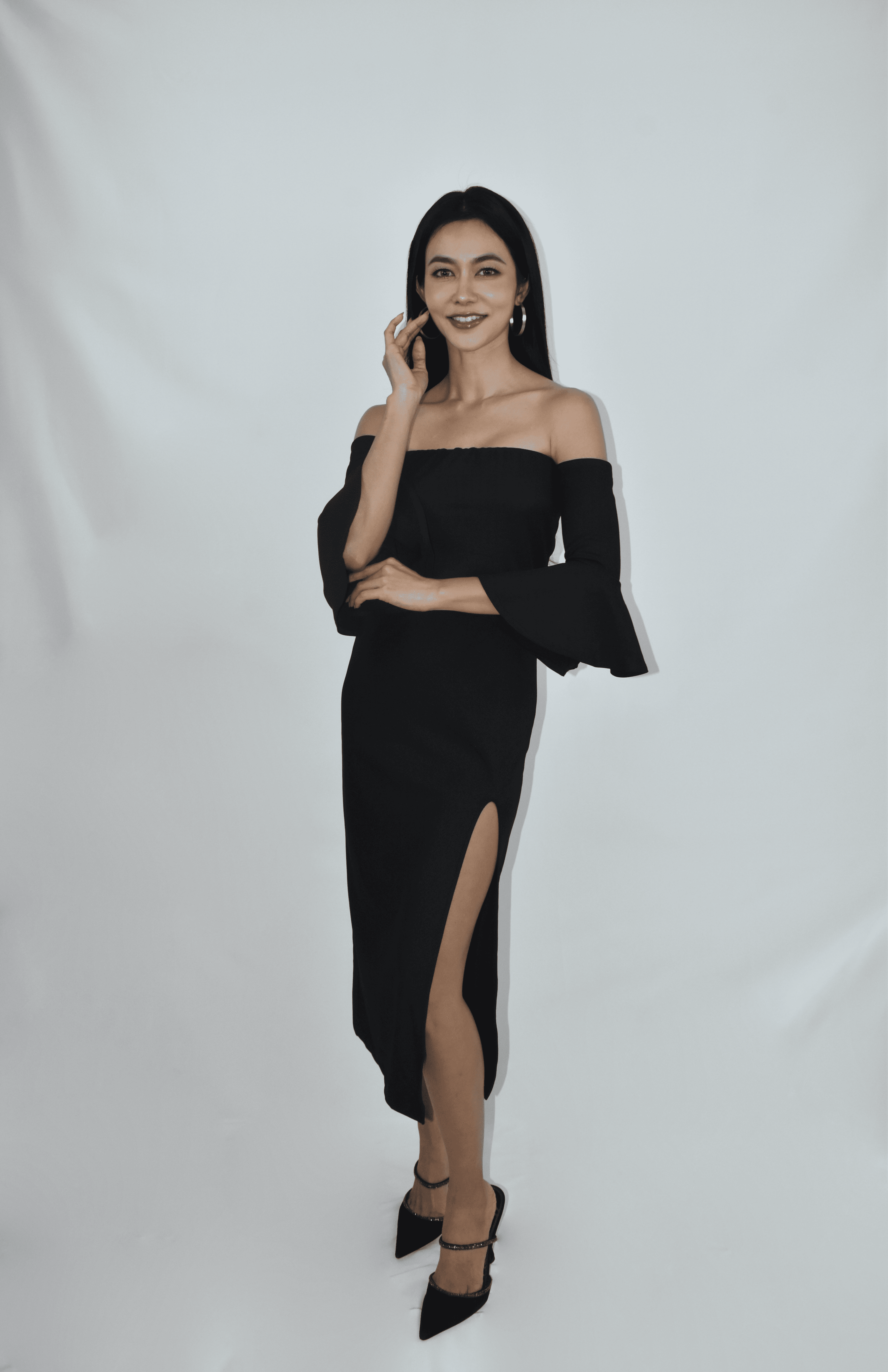 Black Cotton Bell Sleeve Midi Dress (SKU 7669)