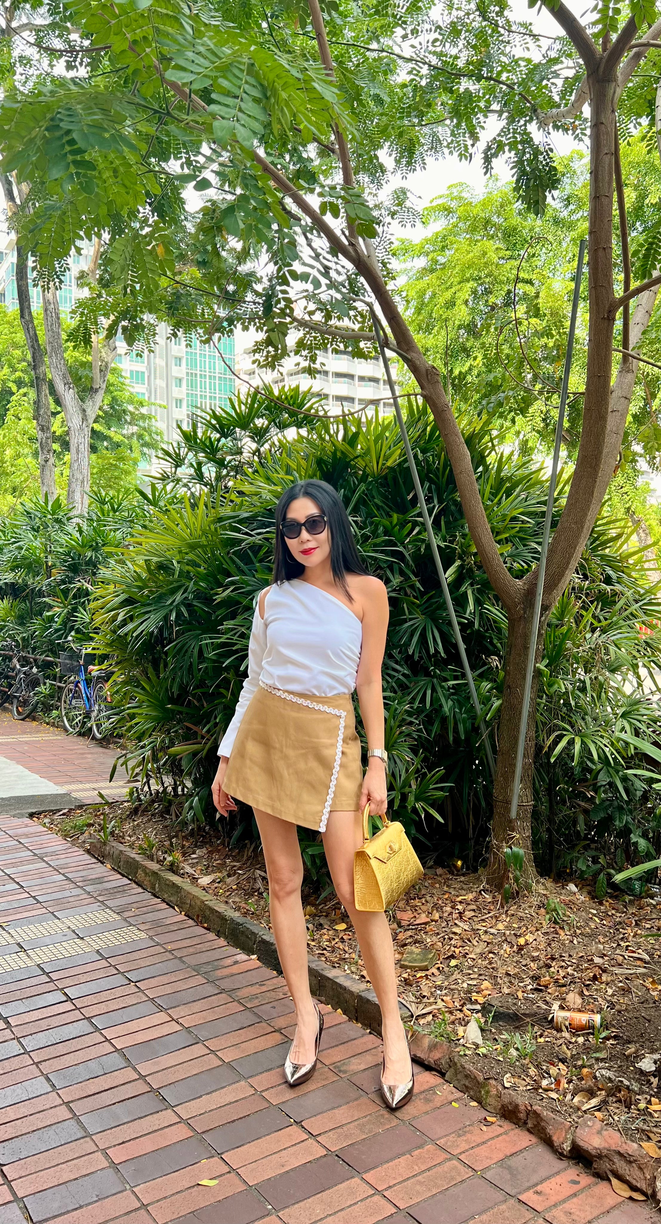 This chic, modern top features an asymmetrical neckline with a single long sleeve and a bold shoulder cutout for a statement-making look. Crafted in soft, stretch fabric, it drapes beautifully across the body while offering comfort and style. Perfect for pairing with high-waisted skirts or tailored pants for an effortlessly sophisticated outfit — day or night.